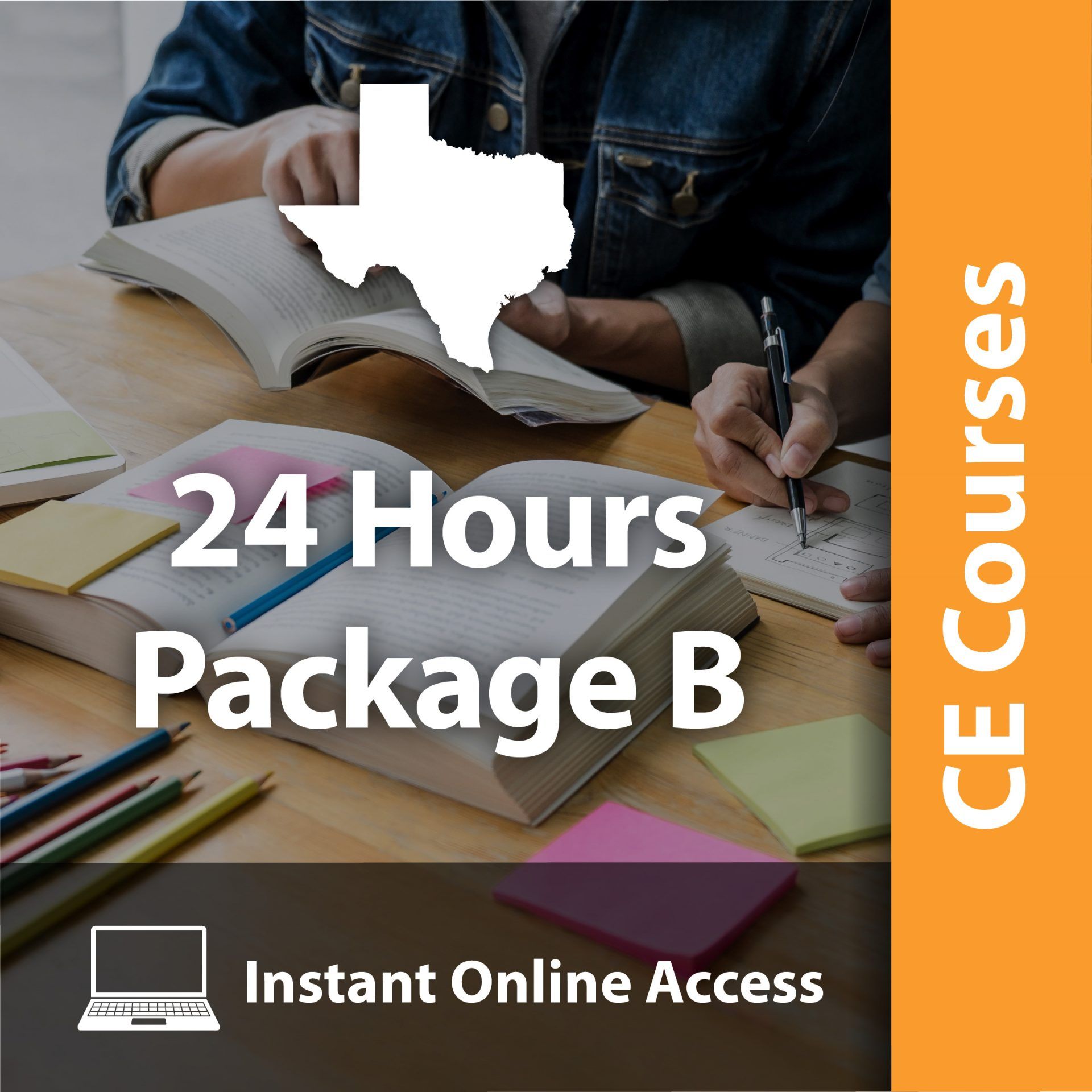 This package satisfies the 24-hour CE requirement for your *Texas insurance license and includes these individual courses: